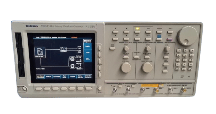 The Tektronix AWG710B is a high-performance Arbitrary Waveform Generator (AWG) designed to meet the demanding needs of advanced signal testing and simulation. With a sample rate of 4.2 GS/s, it delivers world-class signal fidelity, making it an essential tool for engineers working in fields such as disk drive testing, communications, and semiconductor design.